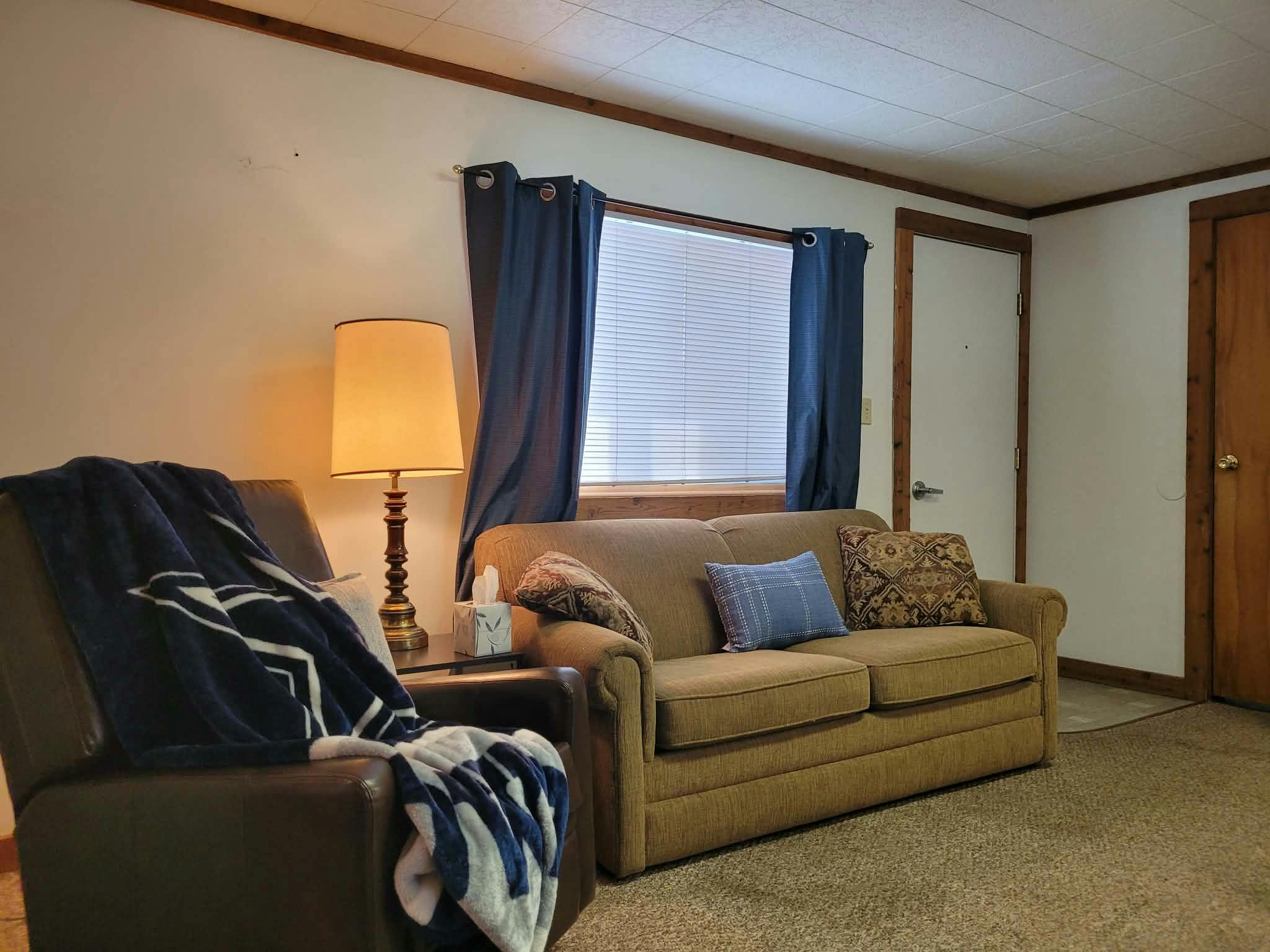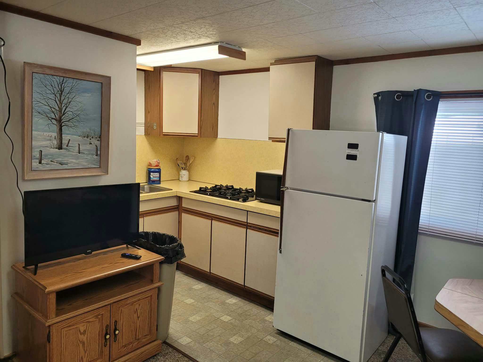 Spacious Two bedroom Suite with 2 double beds. Memory foam mattresses with premium cotton bedding with 2 deluxe pillows per bed. Full kitchen and everything you need to prepare and serve meals. Couch in living room with Led smart Tv's.
